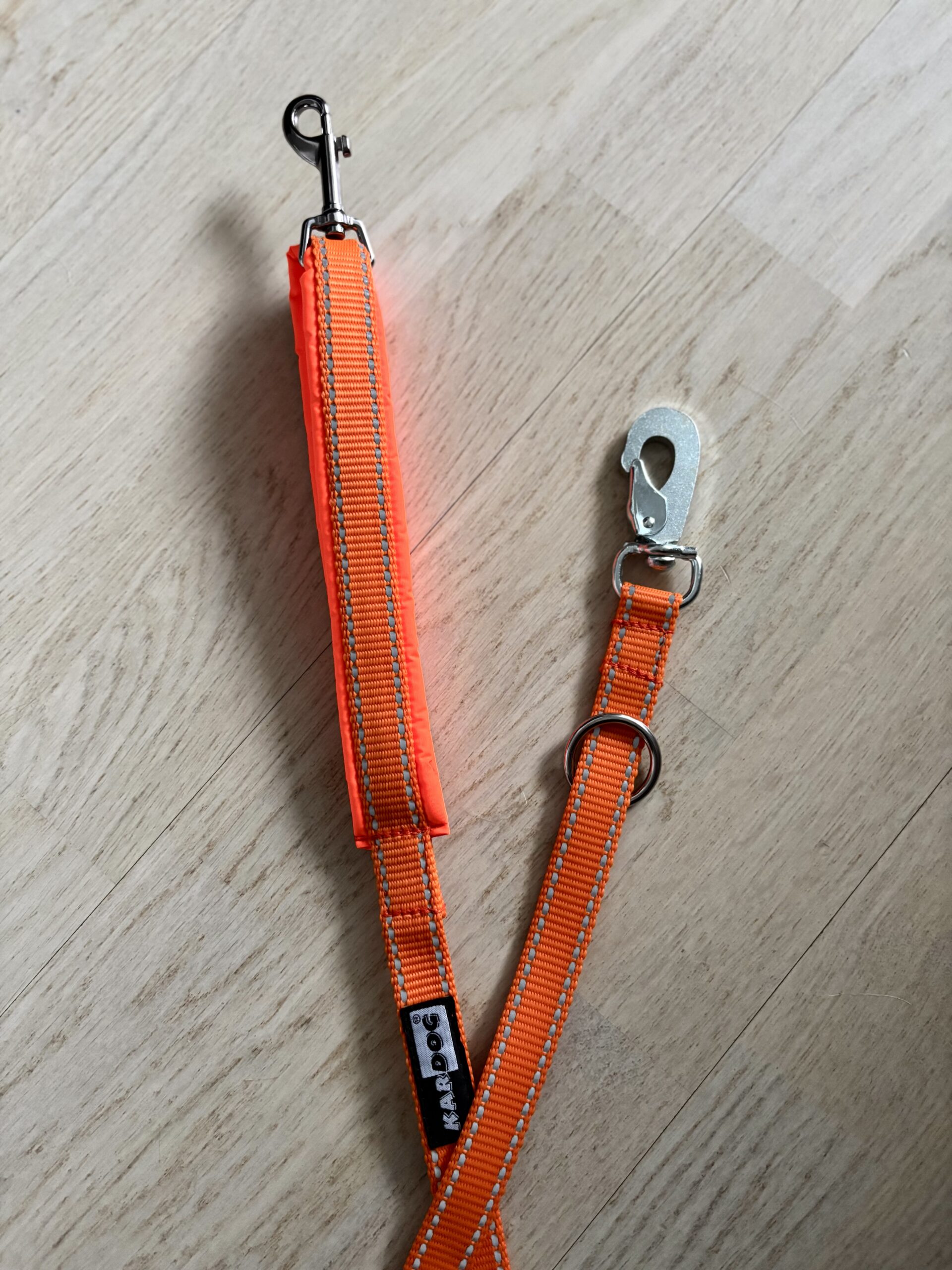 Iita on Team Karhukopla -sarjaan kuuluva oranssi 140cm pitkä talutin. Remmin leveys on 2cm ja koko matkalla on heijastin. Pehmustettu kädensija. Taluttimessa on vapaasti liikkuva rengas, joten se on helppo kiinnittää vaikka puun ympäri kädensijassa olevalla liipasinlukolla. BGB lukko koiran kytkemiseen. Sopii mainiosti vaikkapa Jehu, Jeri, Raipe ja Rymy liivien kaveriksi 🙂